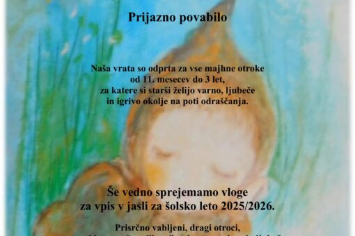 Spoštovane starše obveščamo, da smo za šolsko leto 2021/2022 zaključili s vpisnimi postopki otrok v vrtec.